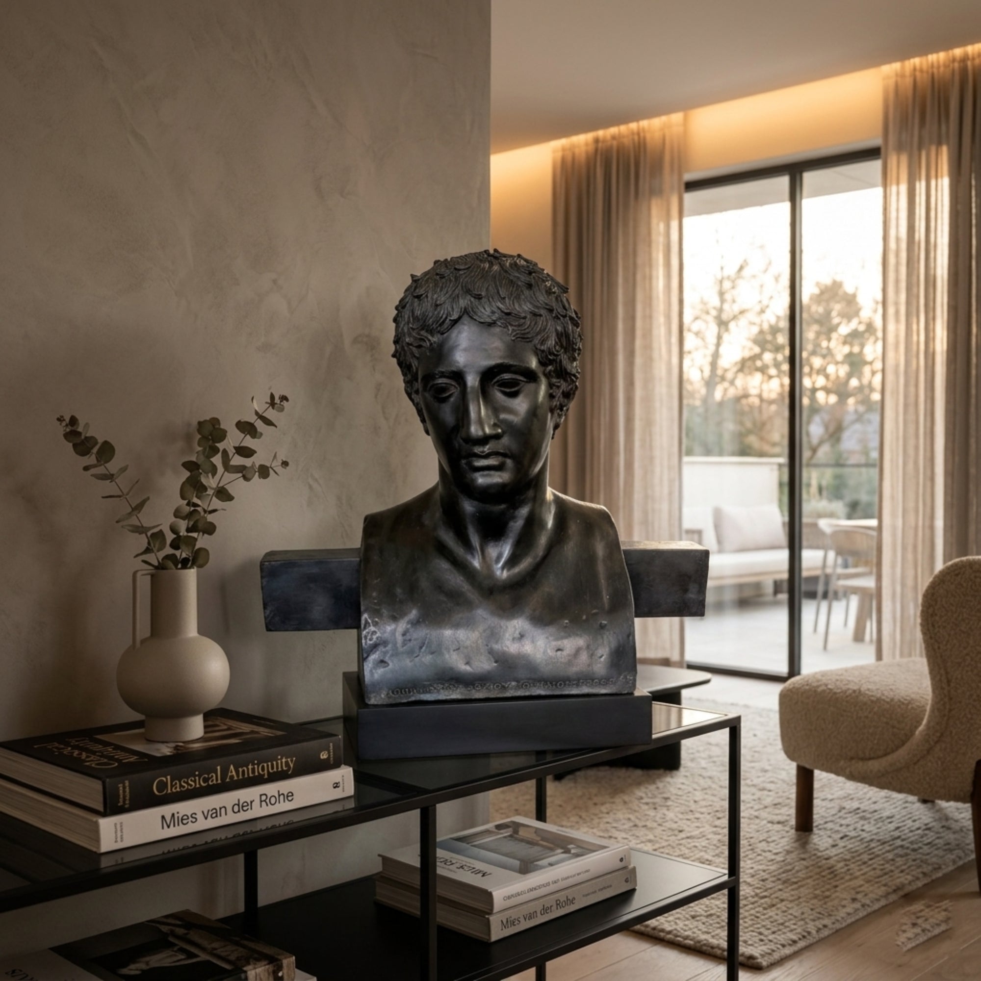 Damit Ihre Bronzebüste immer glänzt, empfiehlt es sich, sie regelmäßig mit einem weichen, trockenen Tuch zu reinigen. Vermeiden Sie die Verwendung aggressiver Chemikalien, die die Oberfläche beschädigen könnten.