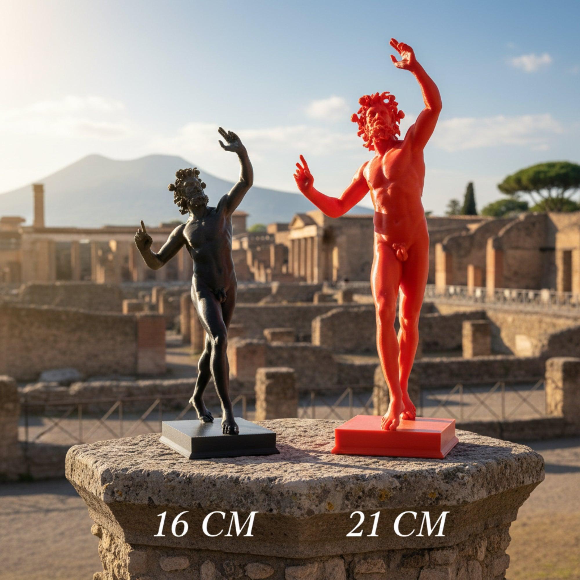 Il Fauno Danzante è uno dei simboli più celebri dell'antica Pompei, rinvenuto nel 1830 tra le rovine della famosa Casa del Fauno.